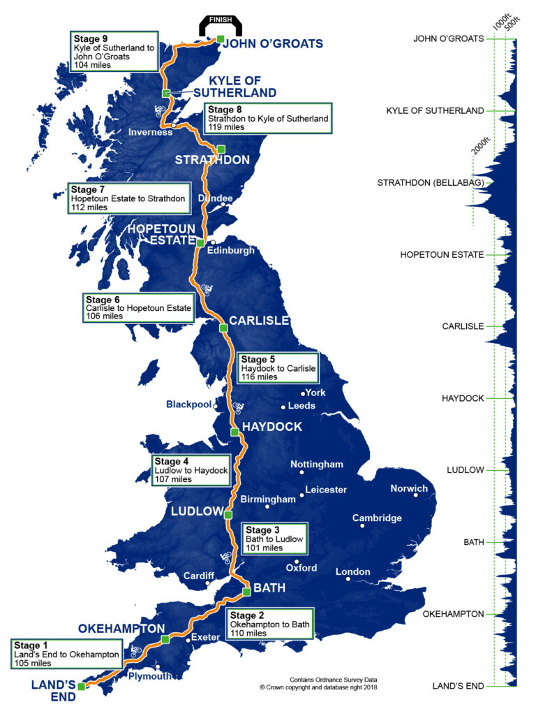 Lands End to John O’Groats by bicycle. That’s 980 miles, over 9 days – averaging 110 miles a day – every day. As far as cycling in Britain goes, it’s pretty much the toughest challenge an amateur cyclist can do