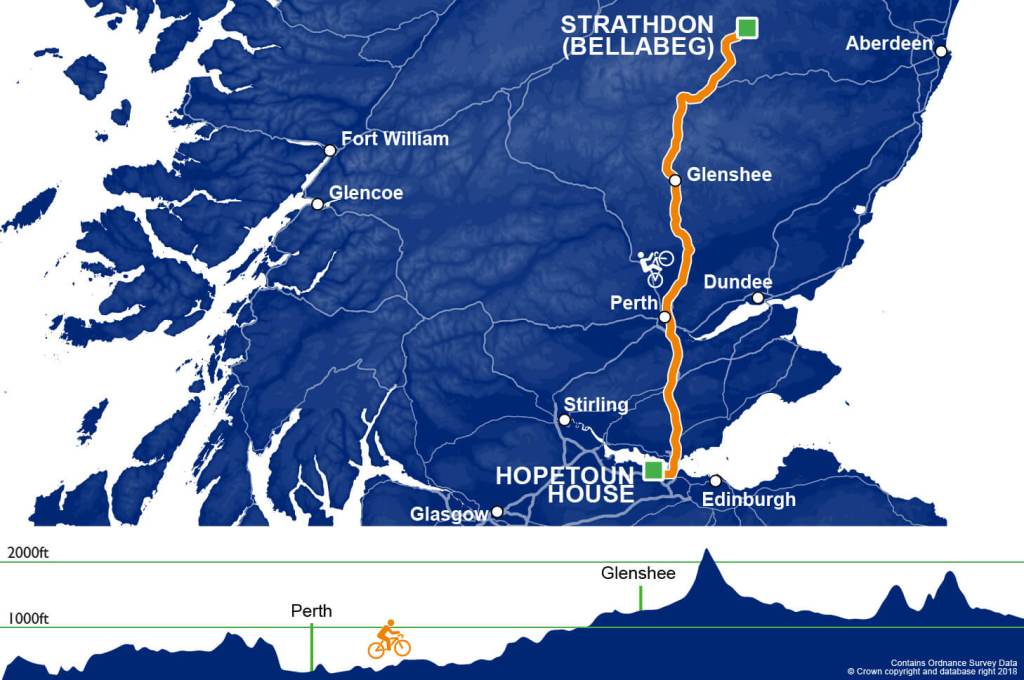 Day 7 will see us climb past Perth and over the Ski Resort at Glenshee – a 5 mile 12% gradient climb! The day also sees us pass Braemer Castle.